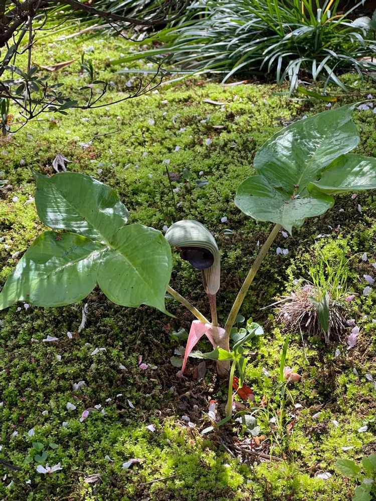 ウラシマソウと同じ仲間なので似てますよね😊ウラシマソウは近所の別のお寺で見たことがありますが、そちらは釣り竿のようなものがヒューンと出ています🎣