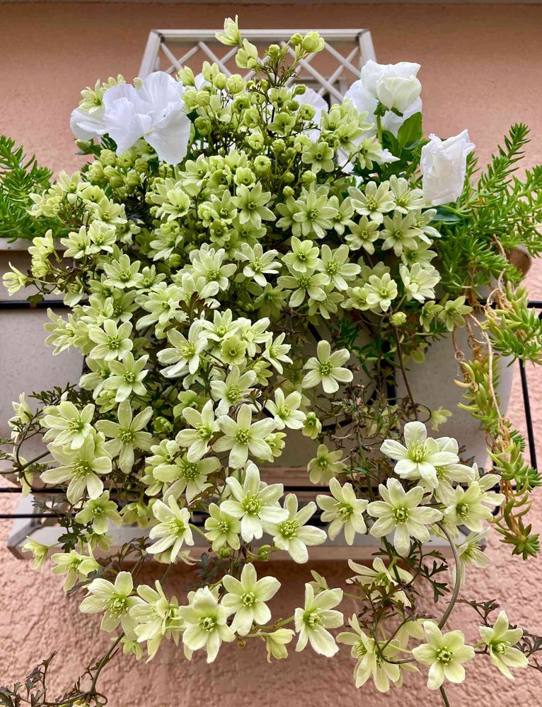 しなだれるペトリエイの枝いっぱいの花が豪華ですね✨11月のスタートのpicからここまで雰囲気ある寄せ植えに仕上がってステキです😍スーパーアリッサム、強くて長持ちしますね✨