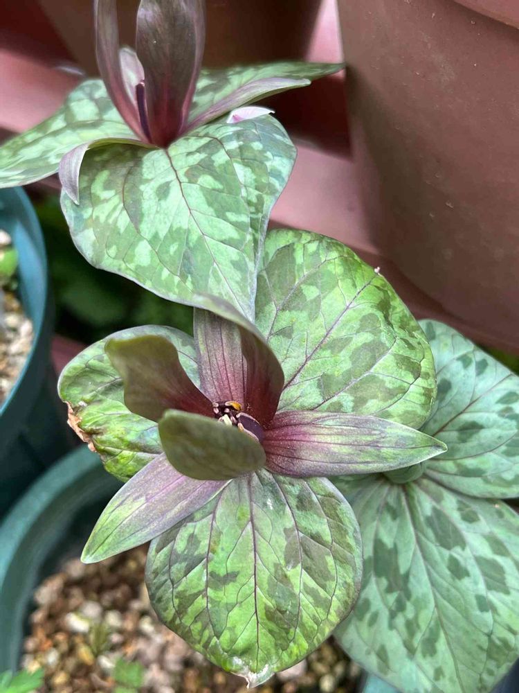 迷彩柄がイケてる洋種エンレイソウが咲きました。