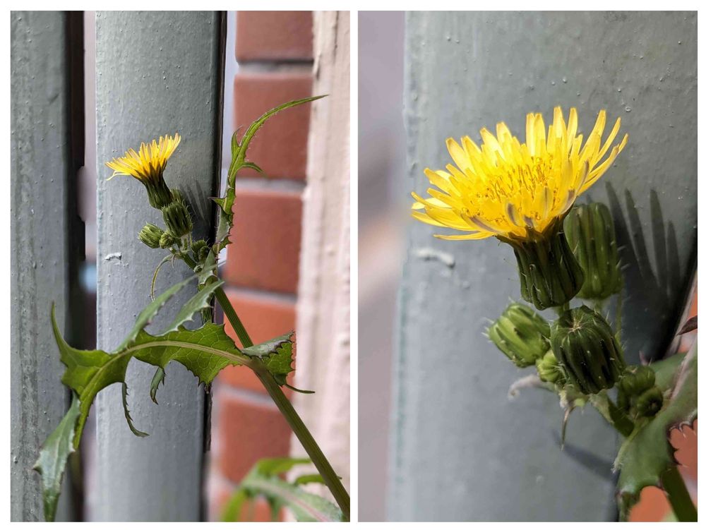 芽吹いた時からずっと見守ってきたタンポポが今日咲きました💛