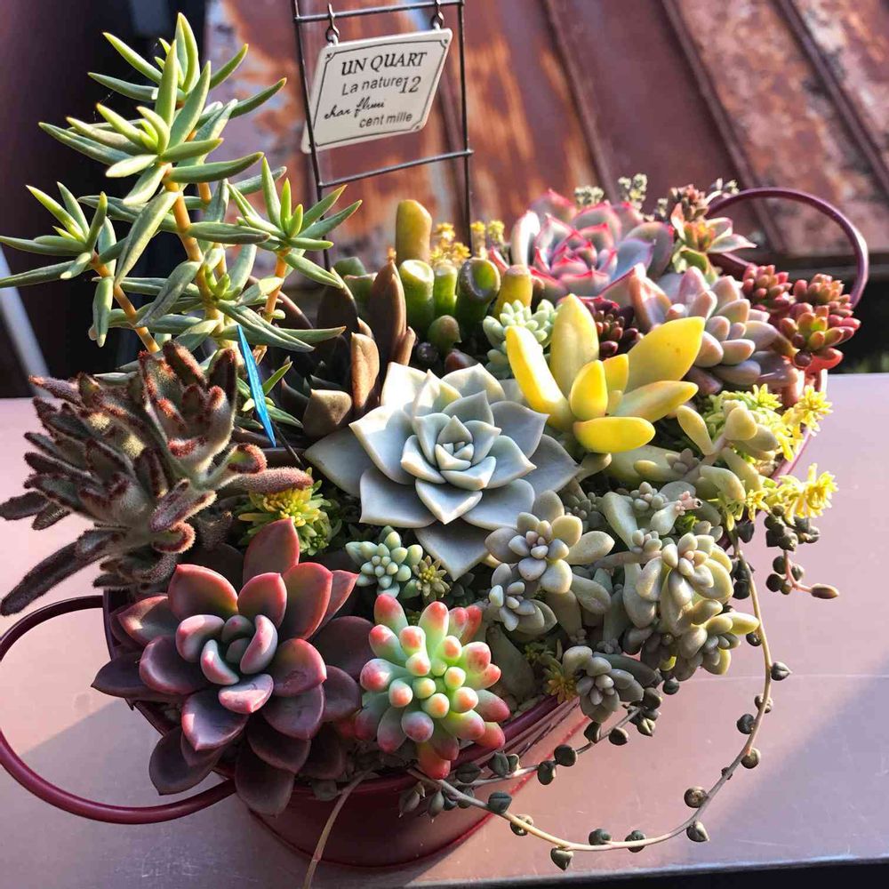 この時の姿は見る影もないですが、この色に魅せられて多肉の世界から抜けられなくなった想い出の寄せ植え( *´艸`)