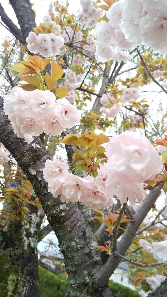 桜通りにて、八重桜「一葉(イチヨウ)」をパチリ!📸🌸🌸😊😄🌞