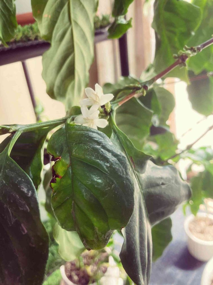 ダイソーで出会ってから10年のコーヒー。花が咲きました♪