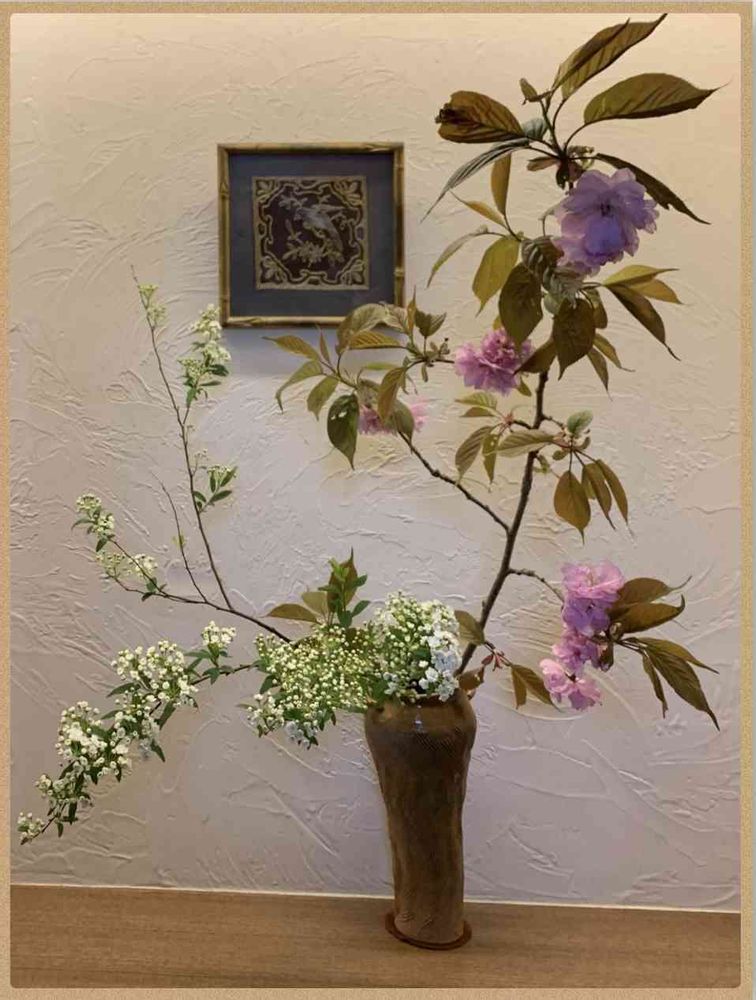 八重桜とコデマリの花枝を頂きました。