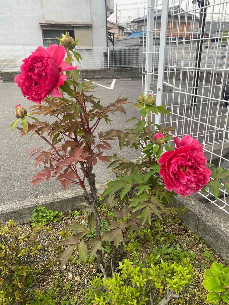 牡丹,職場の花壇,赤い牡丹の投稿画像