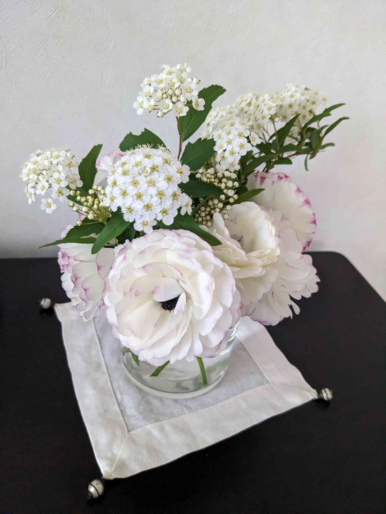 強風で折れてしまった綾リッチと、コデマリをカットして室内に。