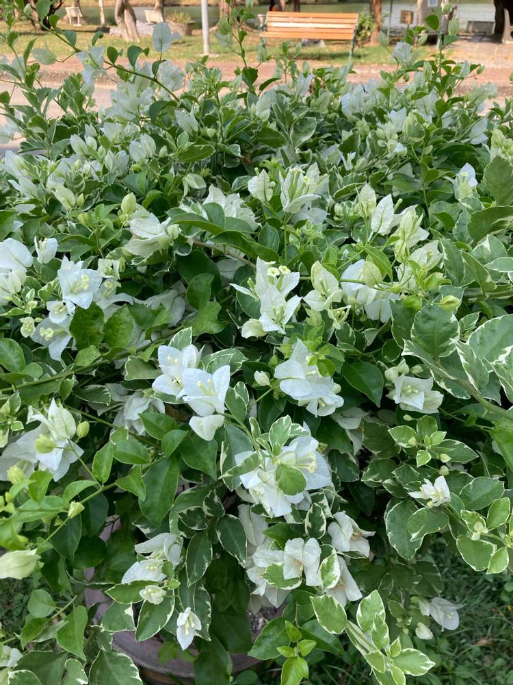 ブーゲンビリア🤍中央の三つの白い部分が花でまわりの花びらに見えるのは苞葉だそうです🌿