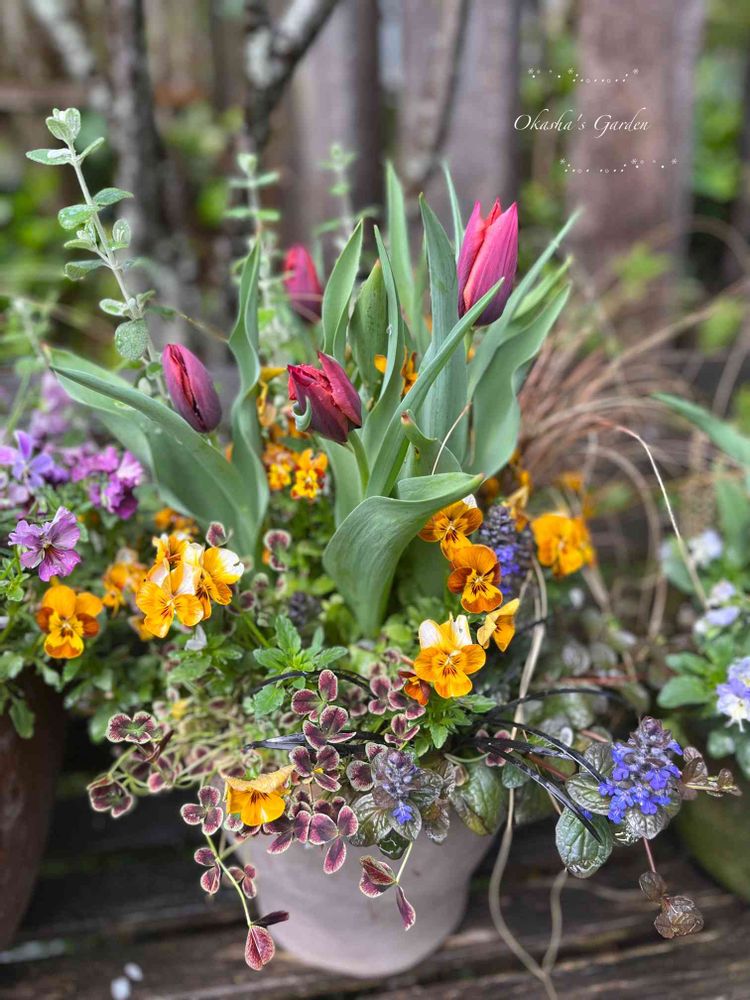 おかーしゃさんのビオラ・パンジー, チューリップ,ハニービーの投稿画像
