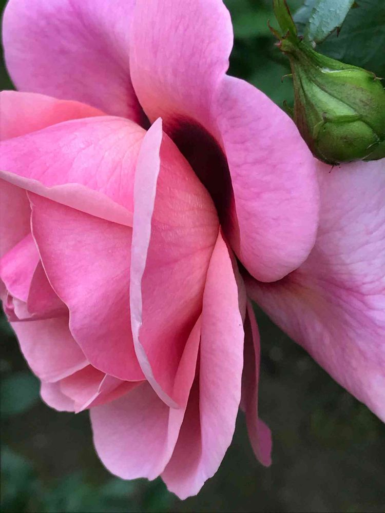 花弁の根元が臙脂色の中輪バラ🌹