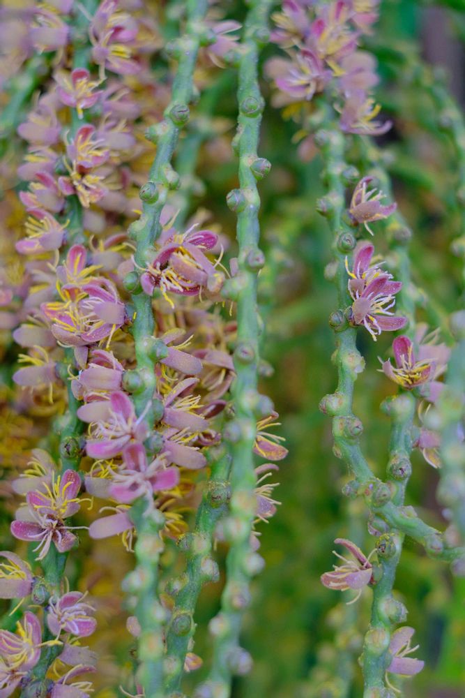 雄花と雌花があるということなので確認に。雄しべがあるのでこのピンクのかわいい花は雄花ですね。雌花はそれに比べて小さいとしか情報がなくて。実が花の後に同じこの房につくことからすると、この小さなポチポチの突起が雌花なのかな、と推測してます。地味〜。😳😳😳