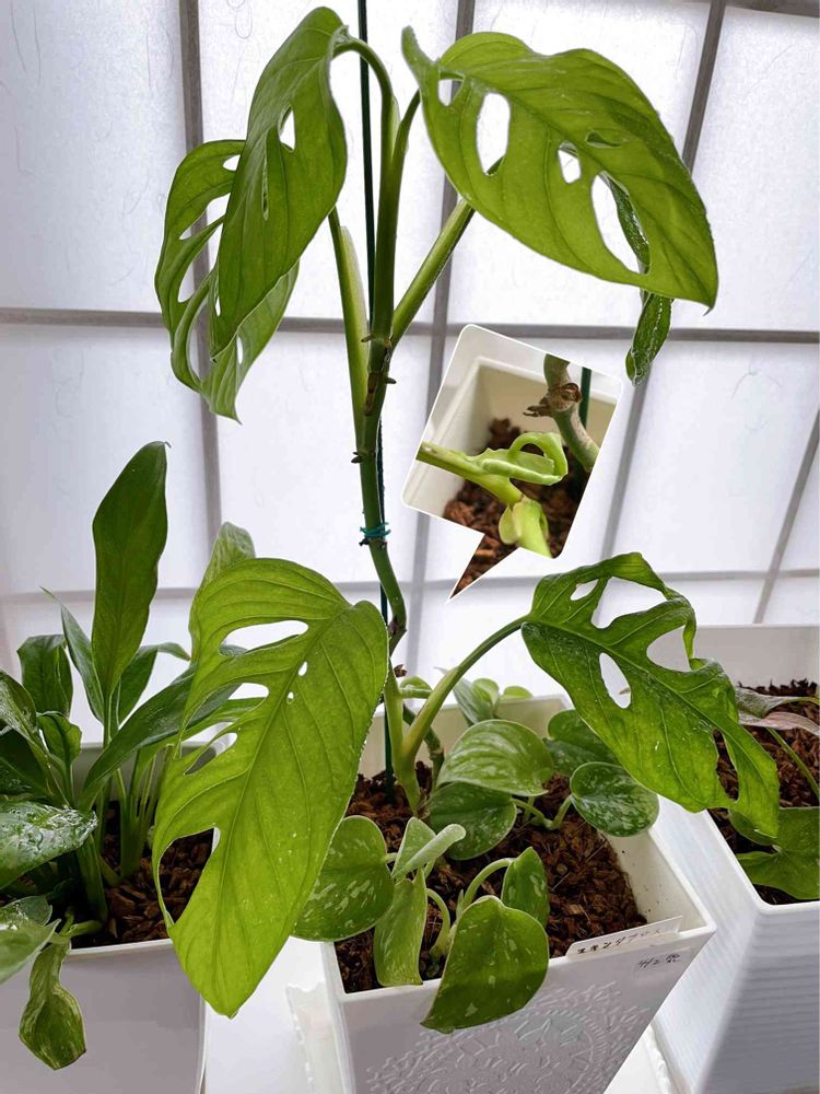 マドカズラとスキンダプサスさん、相性良いみたいで、どちらからも新芽が出てきてくれています.。.:* ✧︎*🌱🌱