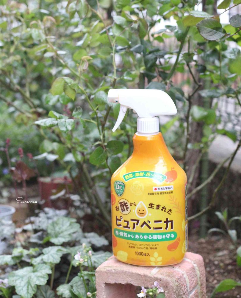 うどんこ病・黒星病の予防ができるそうなので早速散布しました.* 𖥧