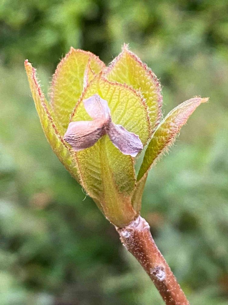 裸芽の状態で春を迎えるものが多い中、この子はずっと芽鱗に守られていたようです。