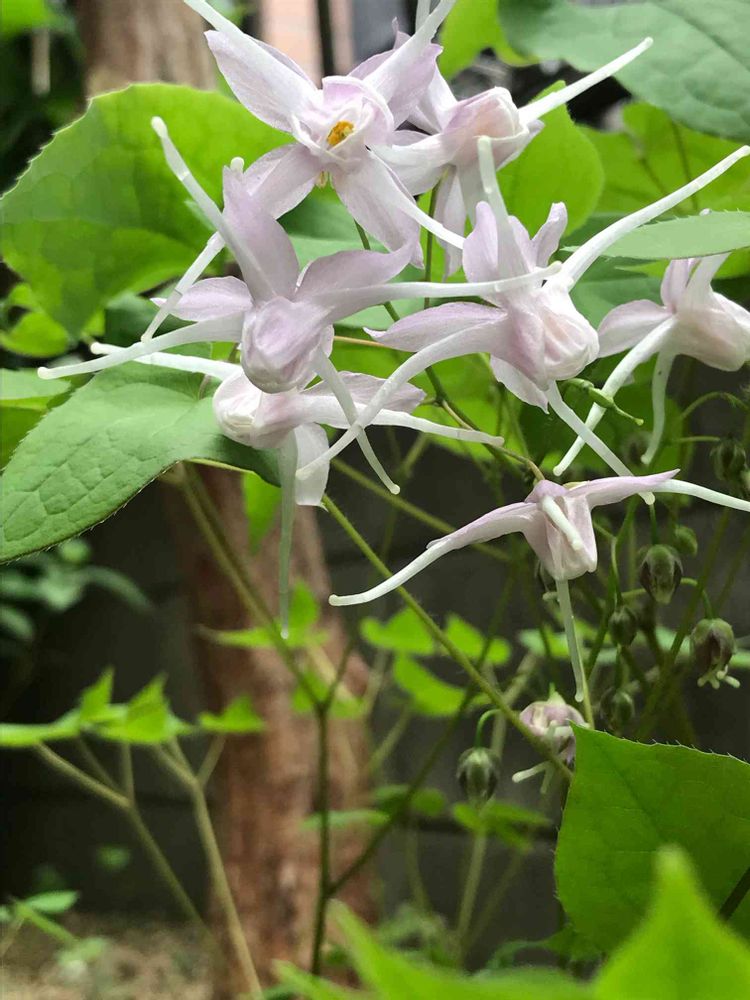 園芸もやっています派です。これは我が家の裏庭のイカリソウです。10年以上前からの住人で花友家から来ました。この地域の自生種はもう少しピンク色が濃いので、自生種とは違うのかもしれません。ただ、私が生まれ育った北陸のものはもっと真っ白ですのでそれとも違います。葉っぱは冬には完全に枯れますので常葉種ではありません。