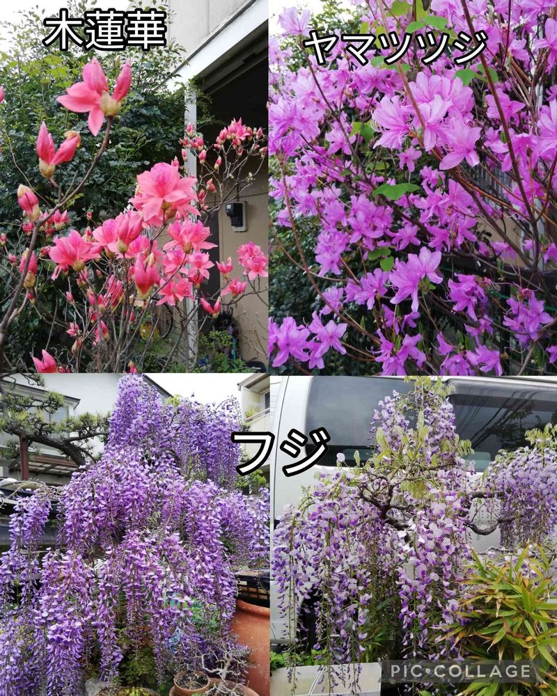おはようございます😚 昨日まで蕾だった レンゲツツジ も今朝は 花が開いていました 山ツツジと色が違うのがはっきりと分かりますフジの花も 増えて たくさん 垂れ下がっています