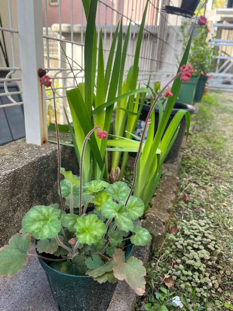 このヒューケラちゃんは地植えにしていた物を鉢へ株分け。地植えの親株も鉢への株分けの子も今ひとつ元気が無く咲き方もよろしく無かったのですが、今年は花も咲かせ葉も小綺麗になりました✨✨