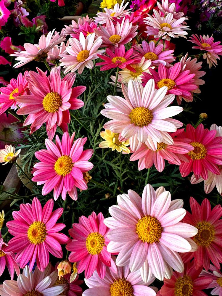 可愛いマーガレットのお花たち、沢山咲いてて、羨ましいです😊。また、お花の色合いも変化してくんですね😊。