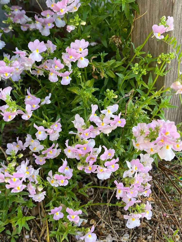 ネメシア💕こぼれ種から縁台の下、日陰になるのがいいのか、よく咲いています😊