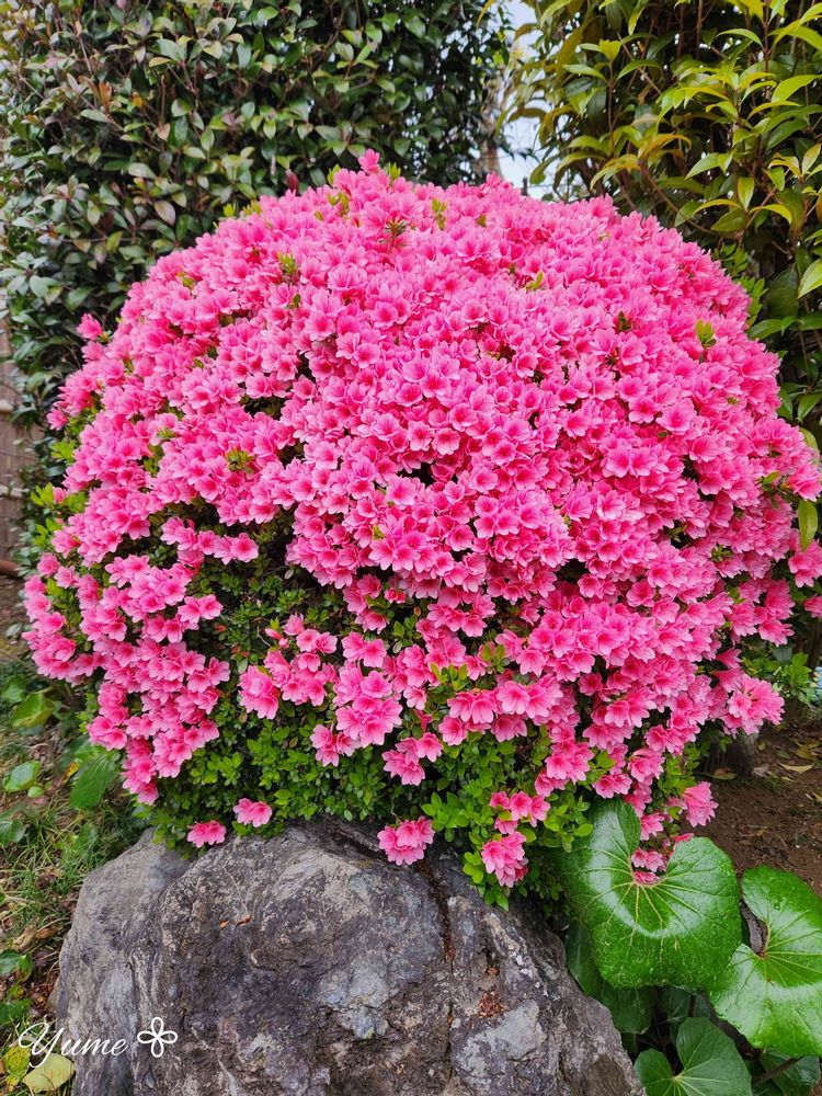 いい形に剪定されて、こんもりかわいくピンクのツツジが咲いてますね💕