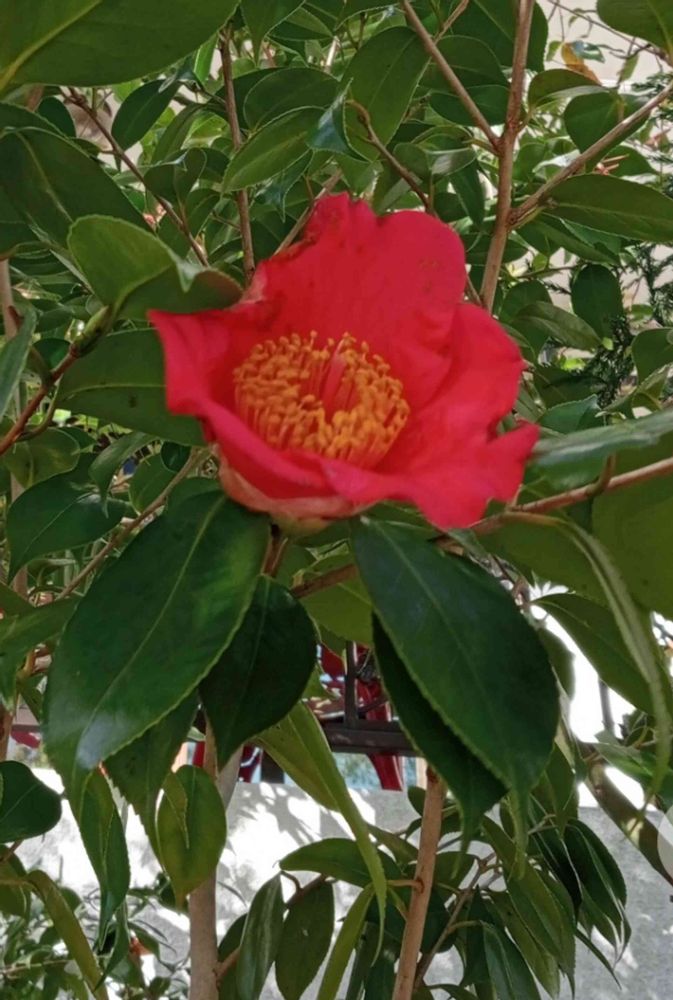 大輪(花径150mm)の赤いツバキが咲いていました。