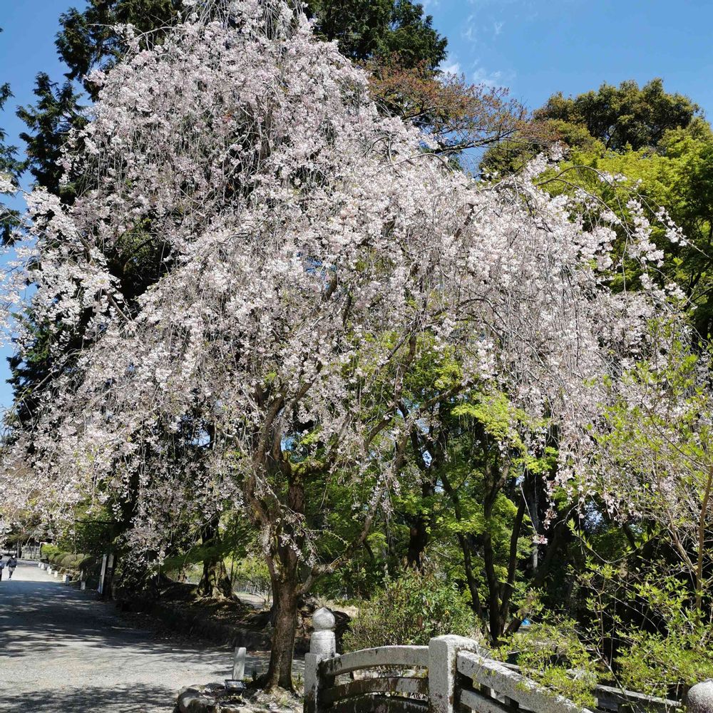 ソメイヨシノは終わっていますが、八重桜、この枝垂桜はなんとか見ることができ、もう新緑