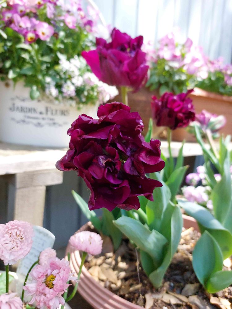 小さな庭,チューリップネグリダブル,鉢植えの投稿画像