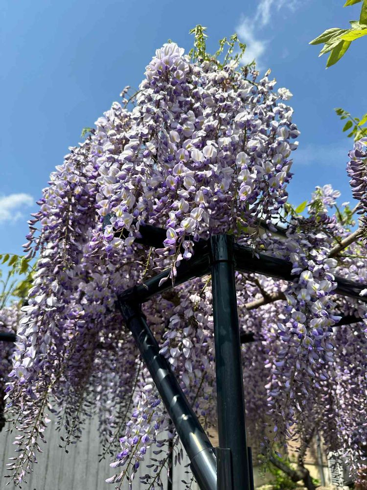 庭の藤がかなり咲き進んできました。風が昨日から強いですが、綺麗に咲いてくれています。