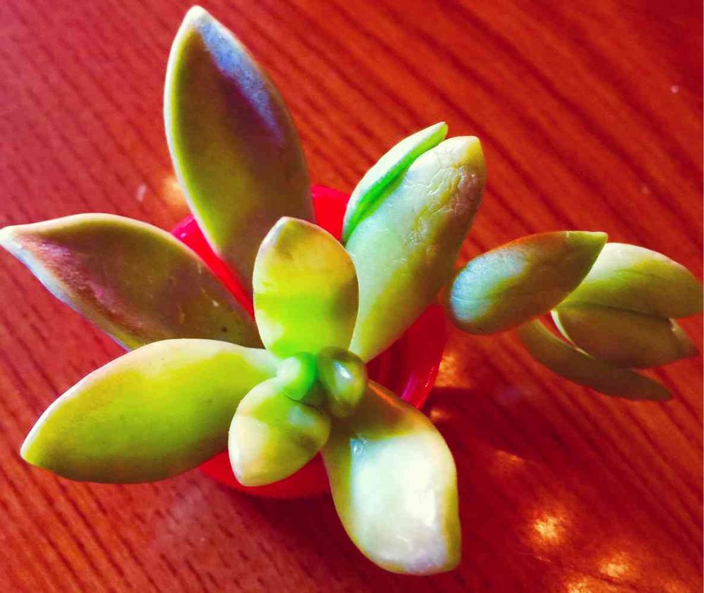 カット succulent です、へた が 無くて とりあえず ペットボトル キャップに 水入れました、大丈夫かなぁ😅🌿
