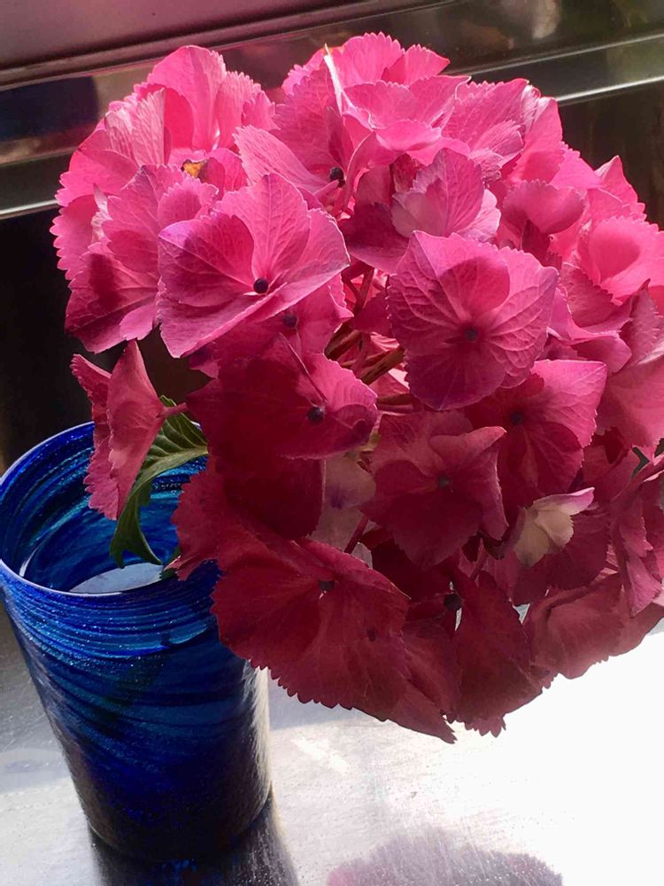 濃いめのピンクとブルーの花器の取り合わせでハッとする感じです💙