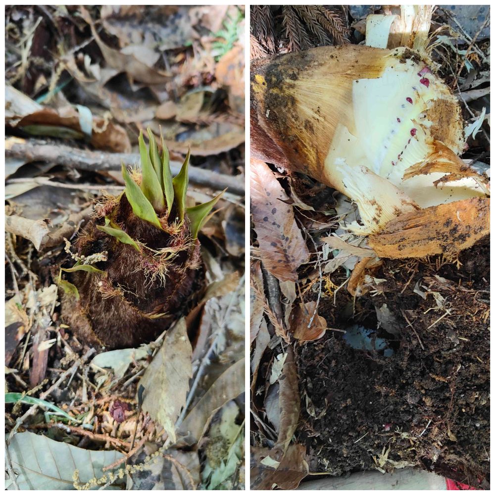 こんなに頭出してしまったらエグ味が増して米糠でアク抜きしないとね〜最盛期なんで周りを掘らずに一撃です失敗は五本に一本位ですかね〜堀跡は筍の有った穴だけ残る 木の芽(山椒)と酢味噌和えで一口有れば良いんです残りは姉が茹でて配る