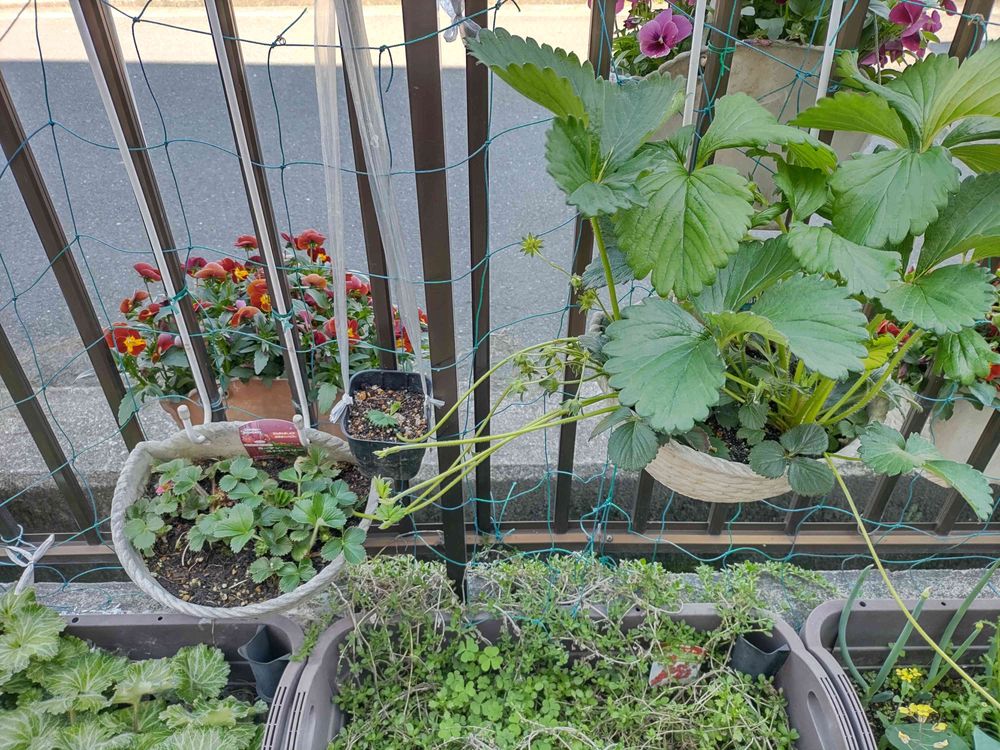 女峰がランナー伸ばしてきたので小鉢とワイルドストロベリーの鉢へ引越しです。