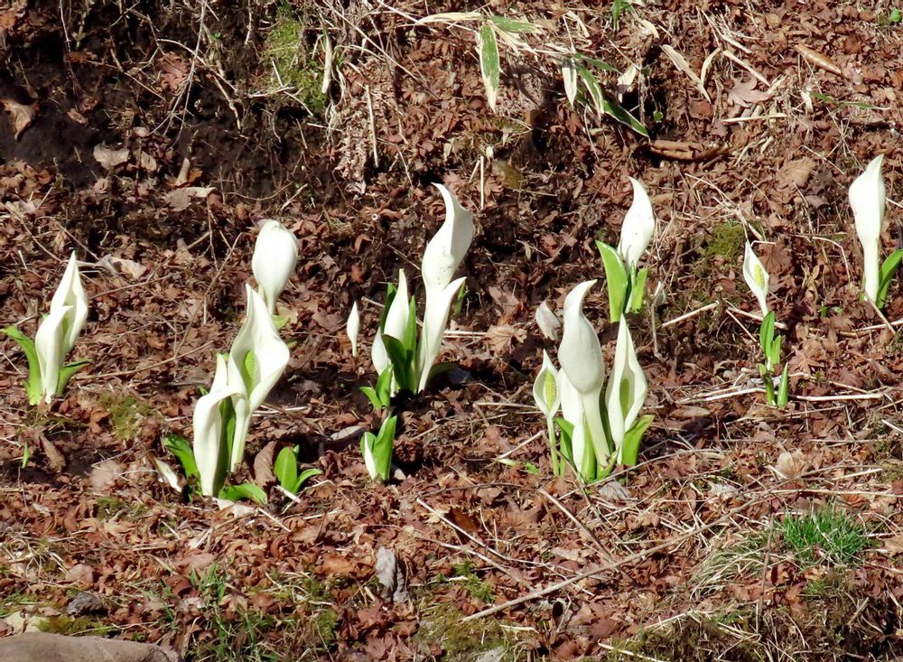 沢沿いの散歩道に水芭蕉が咲いていました🥰
