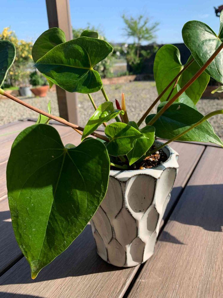 去年半額で手に入れたアンスリウムさん、漸くお気に入りの鉢へ植え替えることができたぁ😍