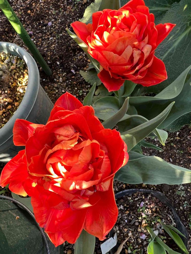 以前に植える場所を工面されたあのチューリップですか?これくらい派手だと元気倍増ですね。