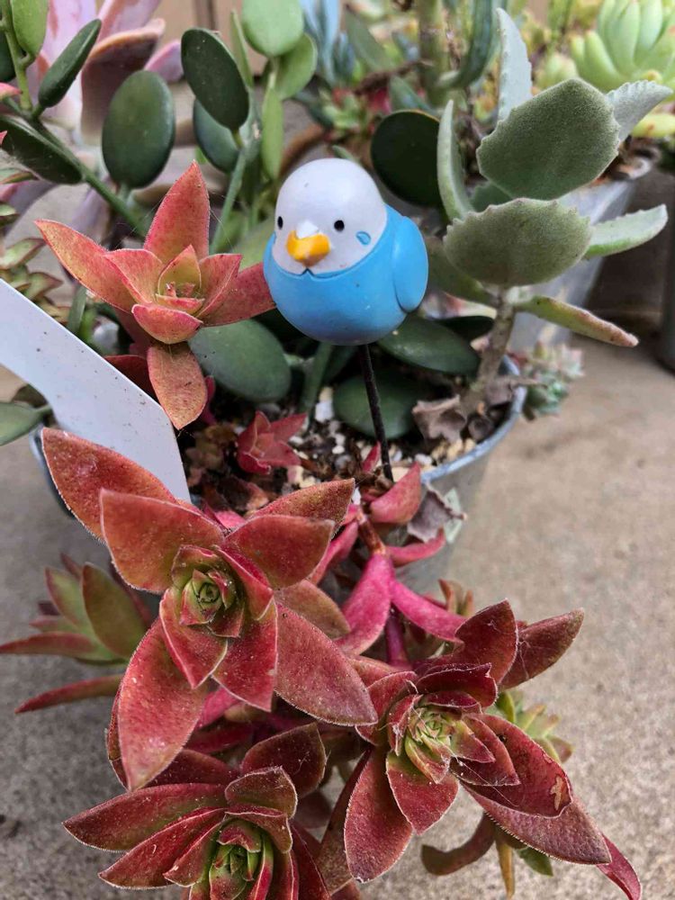 全部の鉢にぴーちゃんピック刺さっています。鉢の向きを変える目印なのですが 可愛いでしょ