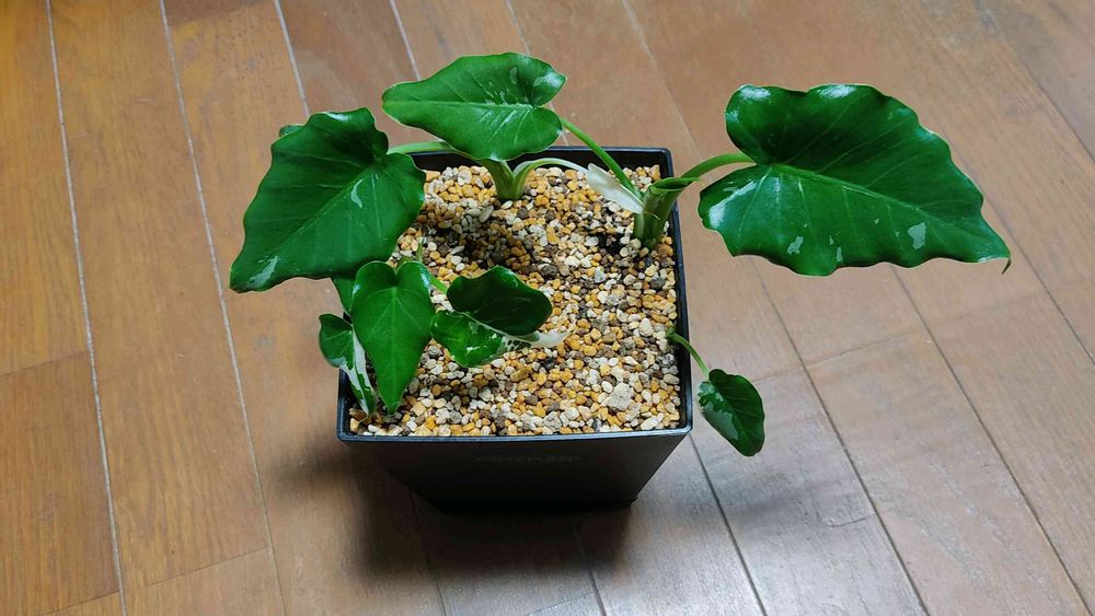 前回投稿してから2週間程経った斑入りクワズイモの角切り。