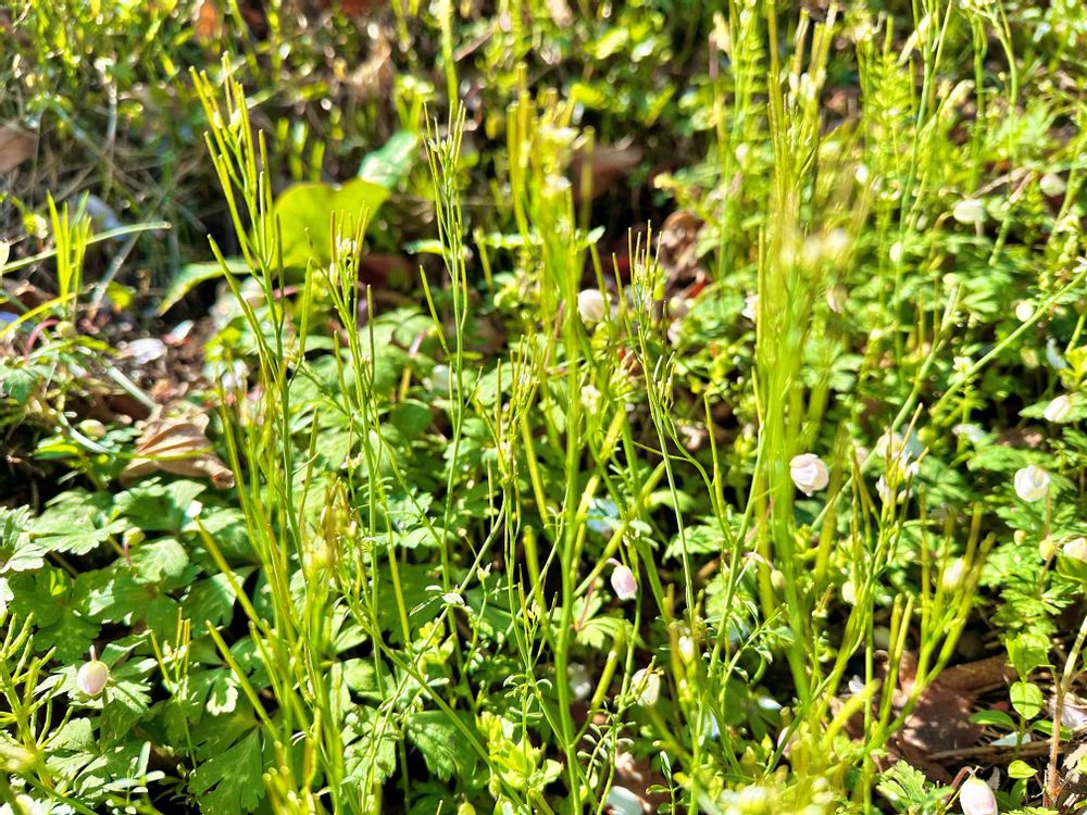 その辺の草むらとかによく生えている「タチタネツケバナ」ですね。ヒョロヒョロした茎を持つ細いタネツケバナです😃