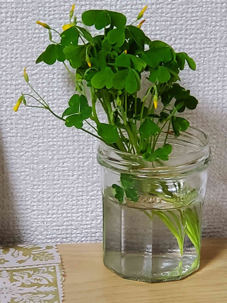 雑草だと分かっていますがグリーンが綺麗✨で瓶に挿しました🍀