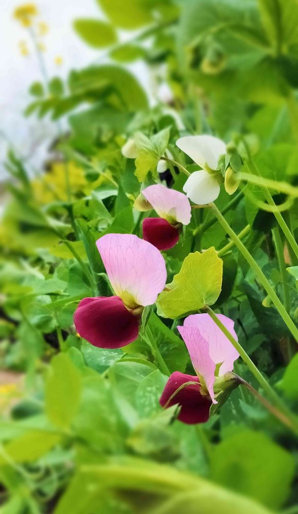 畑にサヤエンドウのお花が、可愛らしく咲いてます( ꈍᴗꈍ)❤️
