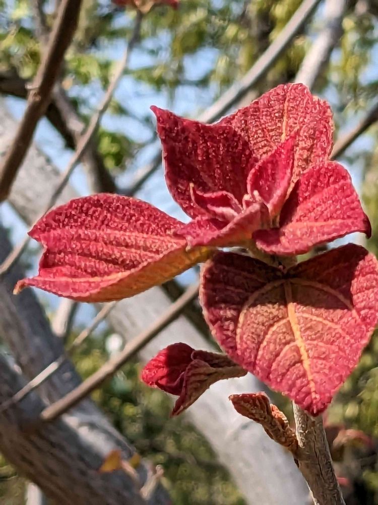 園路脇で見た❗綺麗な赤色の新芽🌱をふいてイキイキと伸びた❤️アカメガシワ❤️