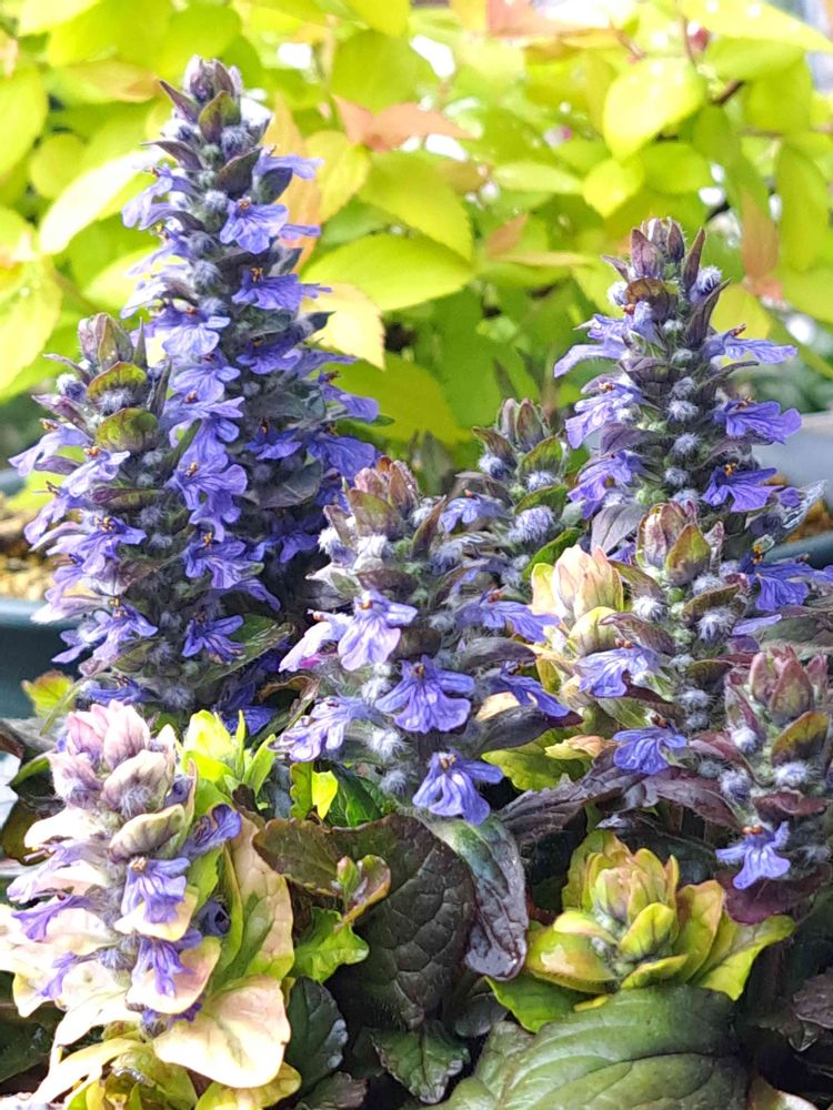 素敵な斑入りのアジュガ💜