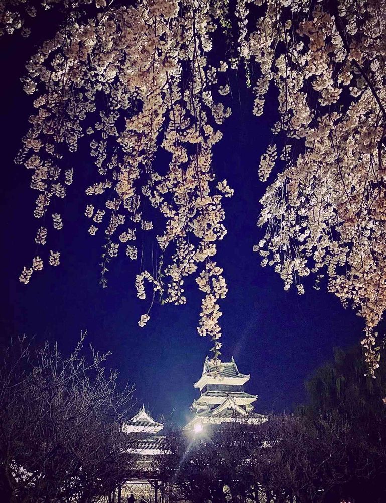 この時期、松本城はライトアップされます。撮りに出かけた晩は、満月が出ており、松本城とのコラボがとても綺麗でした。月とお城を写した写真もありますが、桜(植物)がちょっとだけなので…ネタ切れの時にでもご紹介いたします💦😅💦