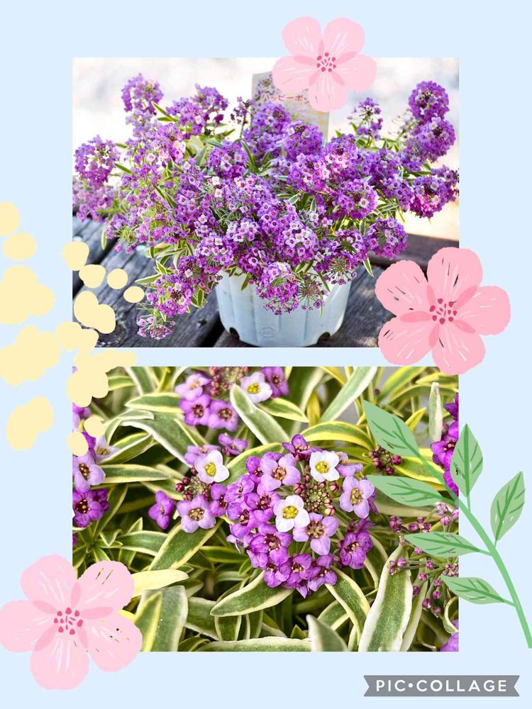 ⬇️ 斑入り葉にパープルのお花のアリッサム、ハッピーポンポン。