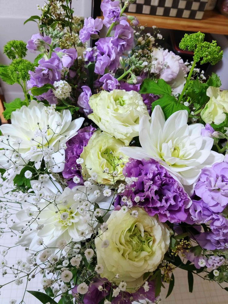 素敵なブーケ♪嬉しいですね〜♪♪♪なんて優しくて気が利く息子さんとお嫁さん!!素敵な家庭を築かれること間違いないですね☺️💕