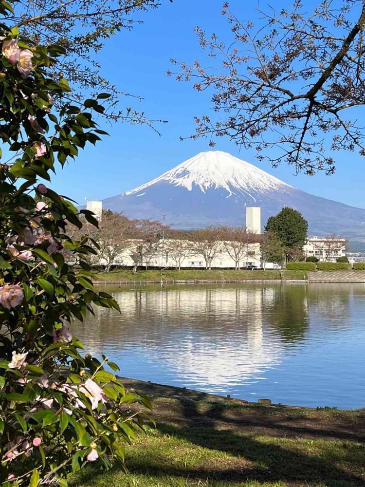 澄み渡る空と湖。そこに日本の象徴の富士山🗻と逆さ富士🗻🎶ため息💨しかありません🥰そして椿もあるのですね🤗💕ありがとうございます🙇