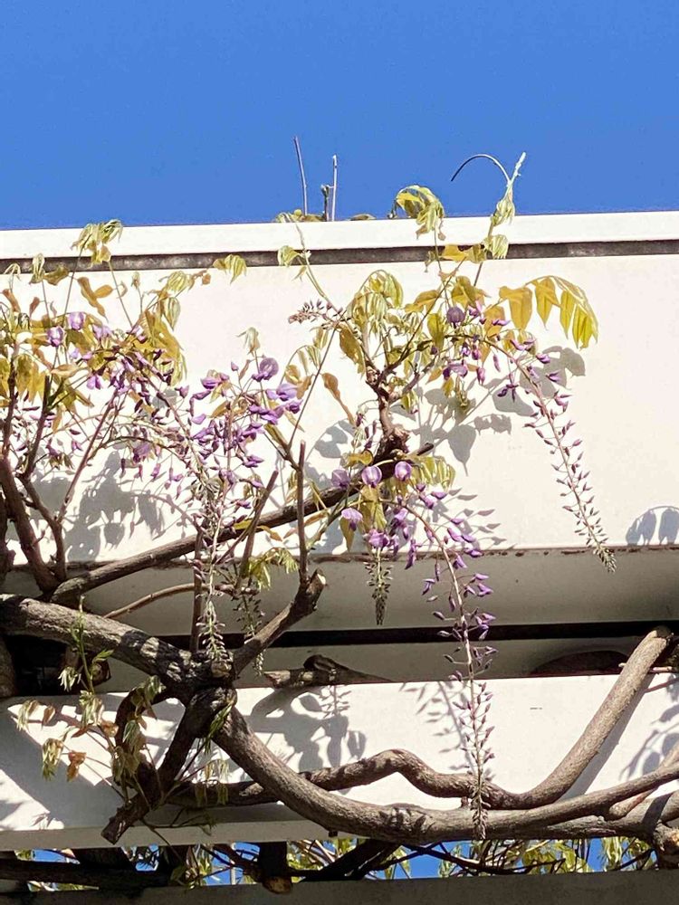 昨日散策中に大きなマンションの入り口のエリアに大きな藤棚があり一部咲いていました💜今年は藤も早そうです。