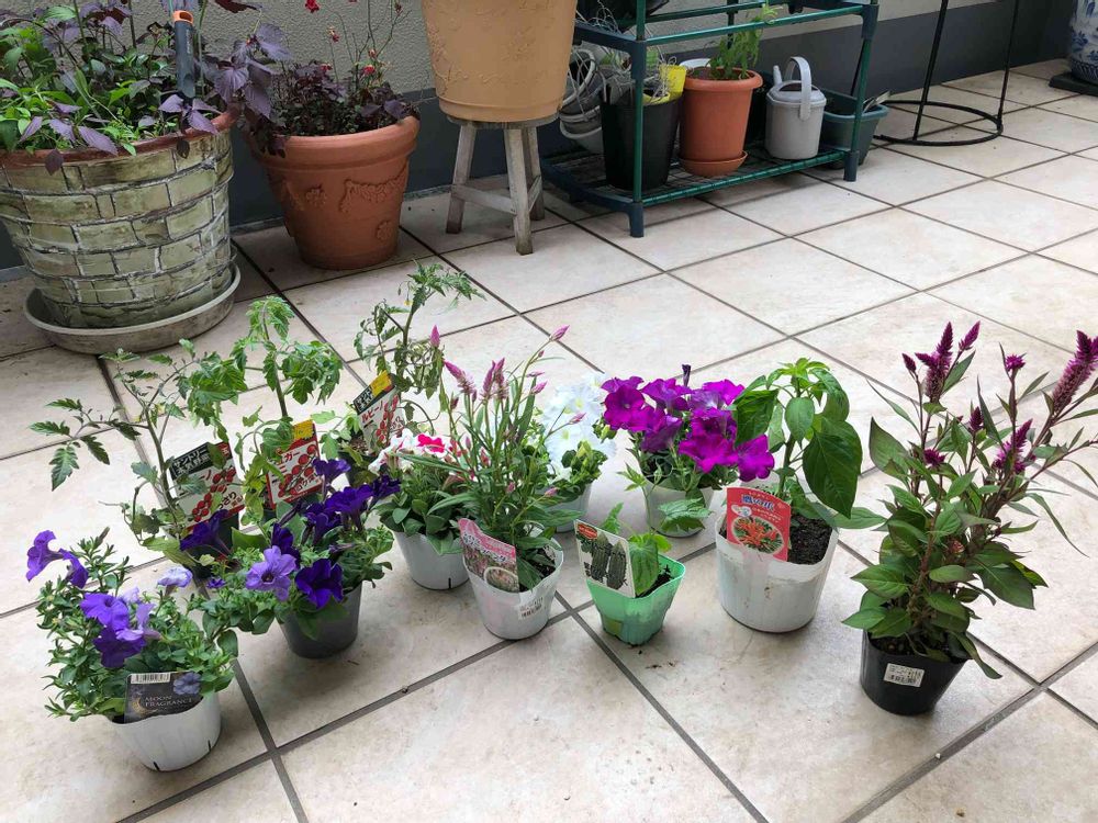 たくさんお買い物できましたね。ペチュニア5しゅるいですか!羨ましい。綺麗なお花がさきますよね。💗💜💙