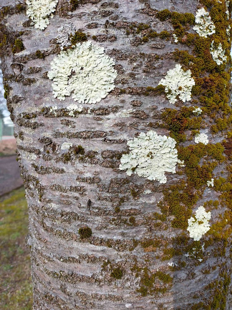 桜の木についた苔と地衣類かな、模様になってて面白いな😃