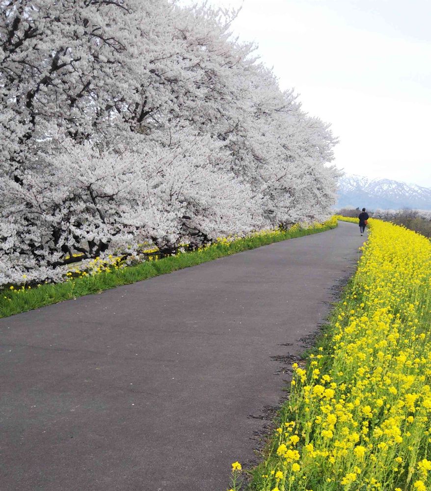 延々と続く桜と菜の花の咲く堤防で、約5kmほどあるそうです。