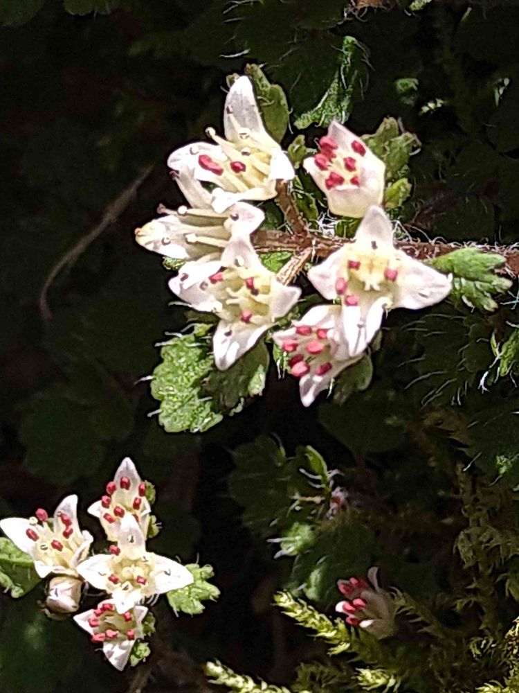 谷川沿いの林間にやっと見つけた小さな花びらに赤い葯が白い花に目立つ、分布を見たら九州は別物でした。 2023.4.10 九重長者ケ原